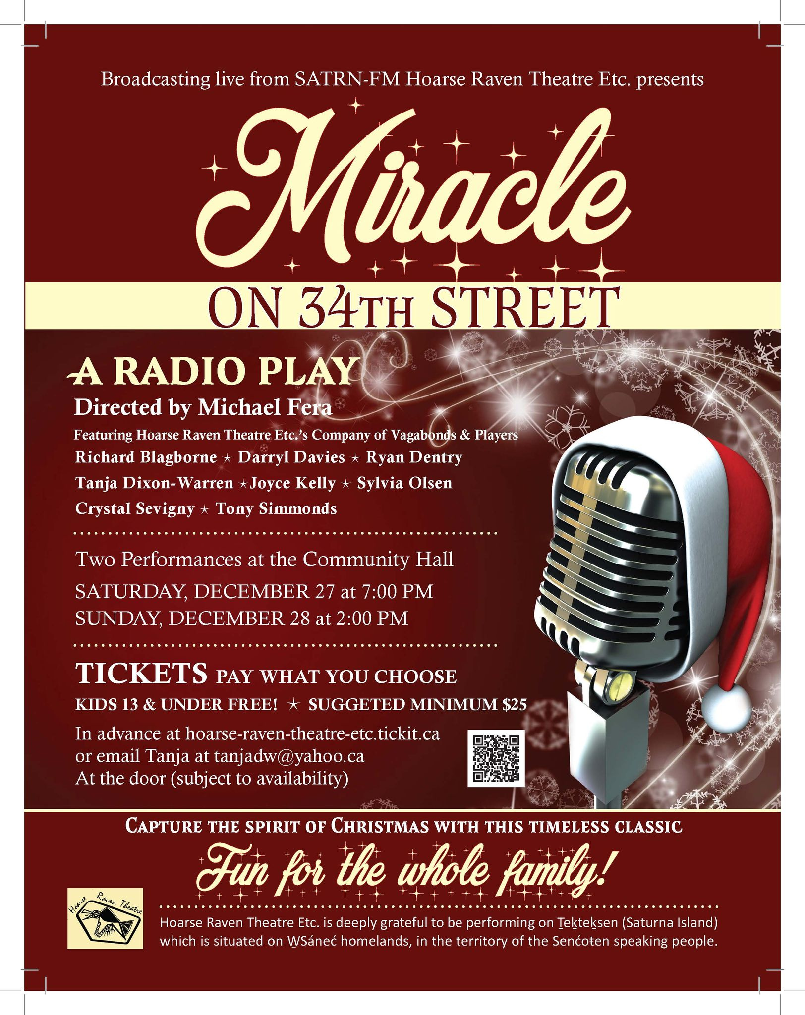Meanwhile, back on Saturna, Ryan recorded an interview with Tanja Dixon-Warren, from the SATRN-FM Hoarse Raven Theatre, ahead of the live radio play: Miracle on 34th Street they’re performing this weekend: